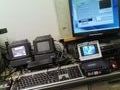 モニター2台&入力切り替え(VHS・DV・8Video用)&編集用パソコン&マメカム です。